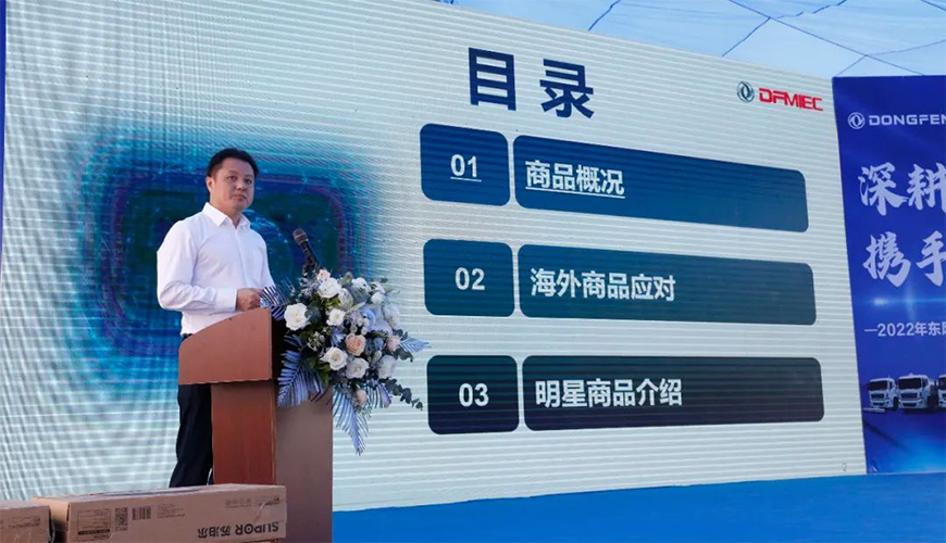 杨涛助理表示,中国东风汽车工业出口有限公司是东风汽车集团有限公司的二级单位,是一家专业从事东风集团汽车出口、全球供应链服务、工业投资的外贸公司。2021年东风的海外事业取得了亮眼的成绩,海外出口车辆(含成套散件)15.4万辆,同比增长了1.2倍,创造了历史最高纪录;2022年将冲刺挑战20万辆的销售目标,借此推荐会的机遇,希望程力和随州的销售经理,能够搭上东风海外事业发展的快速列车,共创新业绩新辉煌。