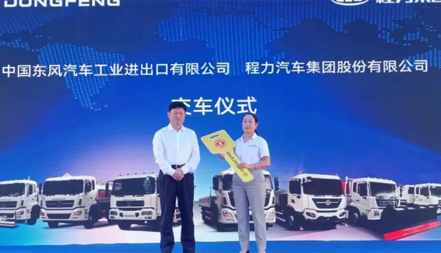 随后,中国东风汽车工业进出口有限公司商用车海外营销部中重型产品总监吴永刚与程力集团国际市场部业务经理陈苇举行了交车锁匙牌授牌仪式。