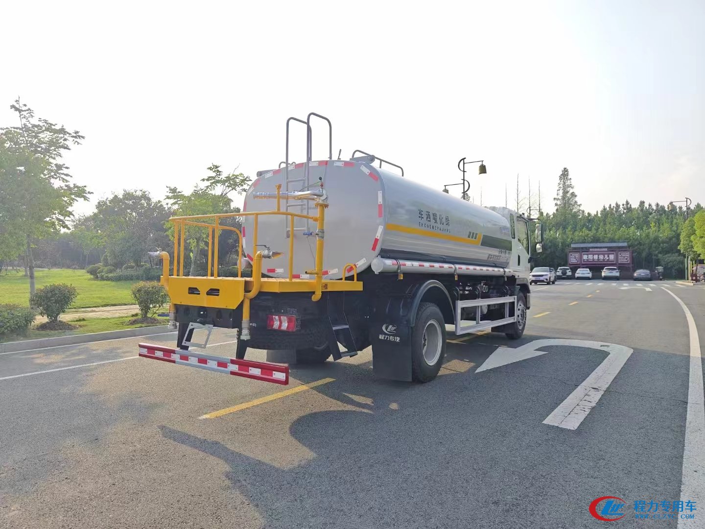 | 上装配置 | 材质:罐体采用Q235,隔板厚度3mm,罐体碳钢厚度4mm,封头厚度5mm.大口径直通球阀,铝合金三通,加粗主管道(76),铸铝管接件:铝合金弯头三通、铝合金法兰三通、铝合金泵出口四通、铝合金泵进口直通,模具一次性压铸成型,无焊缝,避免漏水,标准化设计,互换性好,方便维修换件,铝合金材质更轻量化,美观实用,提升产品档次。 其他配件:铝合金后洒、不锈钢球阀、高压水炮,冲孔板平台:2mm冲孔板,防滑性更好,平台上不积水,结构优化,冲压成型,强度更好,轻量化设计,美观实用,提升产品档次 洒水车专用性能洒水车专用性能 前冲(喷)后洒、带侧喷、带后工作平台、平台上安装绿化洒水高压炮(炮喷射形状可调:直冲状、大雨、中雨、毛毛雨,可连续调节,最大射程可达30米),配备大功率专用洒水泵,带消防接头,带自流阀,带自吸功能,带滤网。吸程≥6米 洒水宽度≥16米 射程≥30米 雾状≥15m 。 | ||
