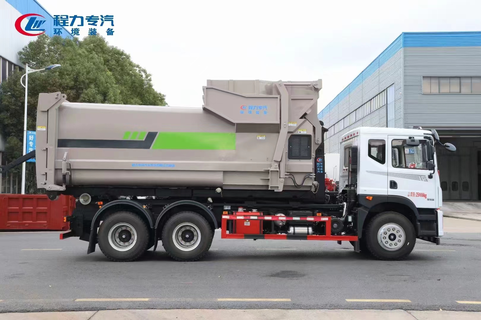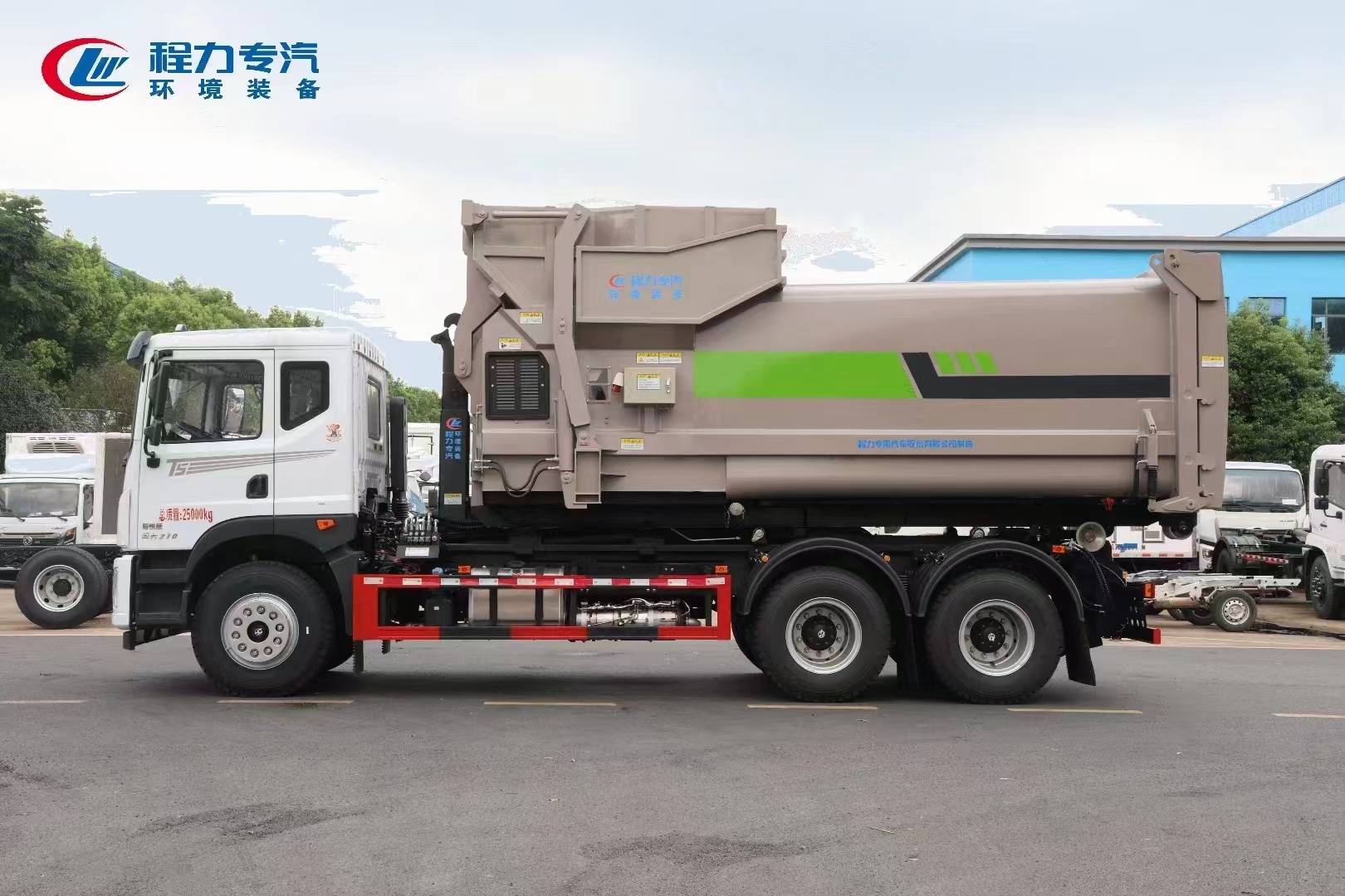 湖北程力汽车:程力专汽东风华神后双桥勾臂垃圾车+移动压缩箱产品型号及参数配置,程力专汽东风华神后双桥勾臂垃圾车+移动压缩箱高清图片,程力汽车系列程力专汽东风华神后双桥勾臂垃圾车+移动压缩箱最新报价请拨打客服热线。车辆主要配置 产品名称: 程力威牌CLW5253ZXXBHJ车厢可卸式垃圾车 外形尺寸: 828025503170(mm) 排放水平: 国六 货箱尺寸: (mm) 总质量: 25000(Kg) 接近/离去角: 15/19,15/20,15/21() 额定质量: 14250,14185(Kg) 前悬后...