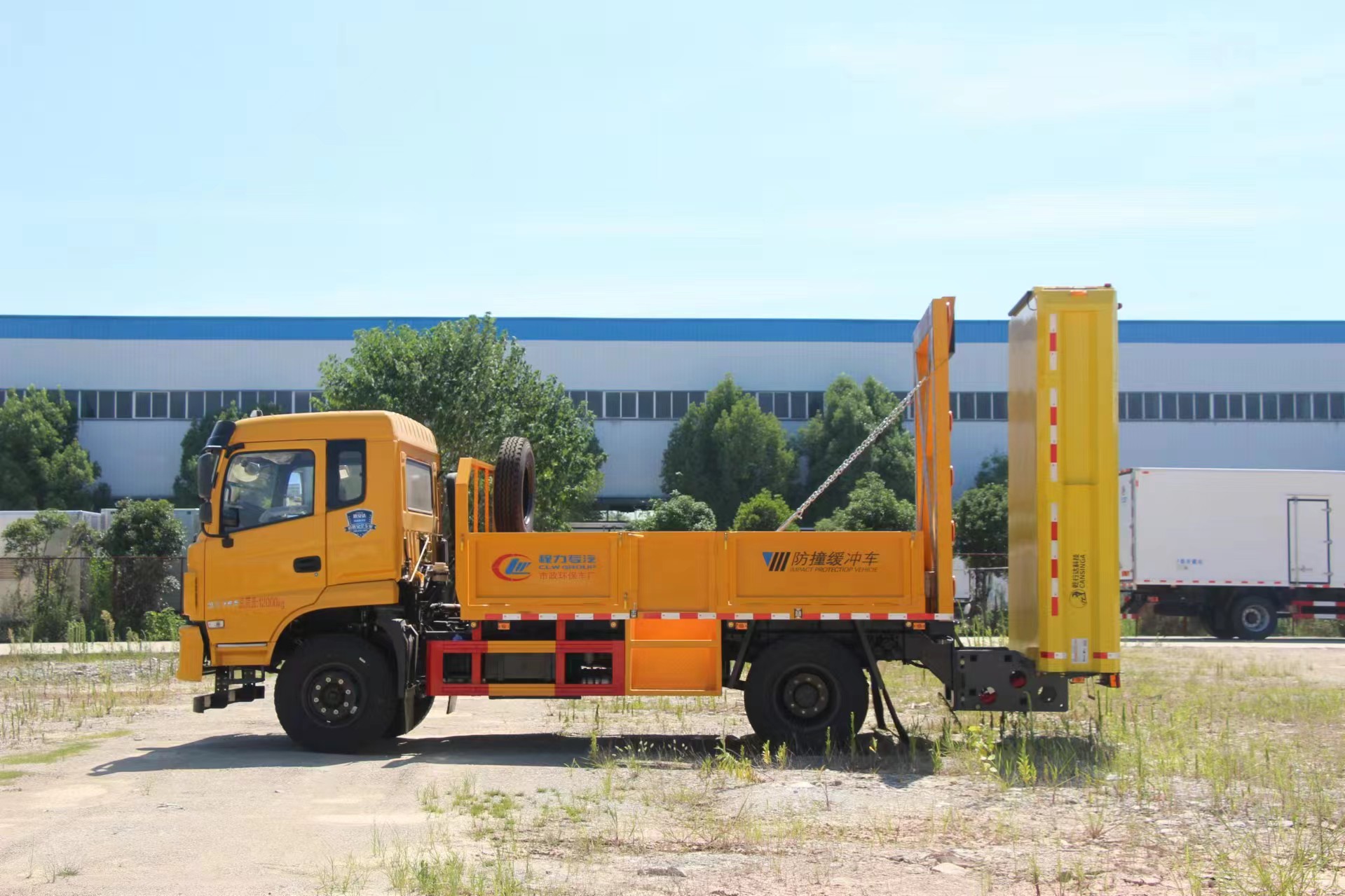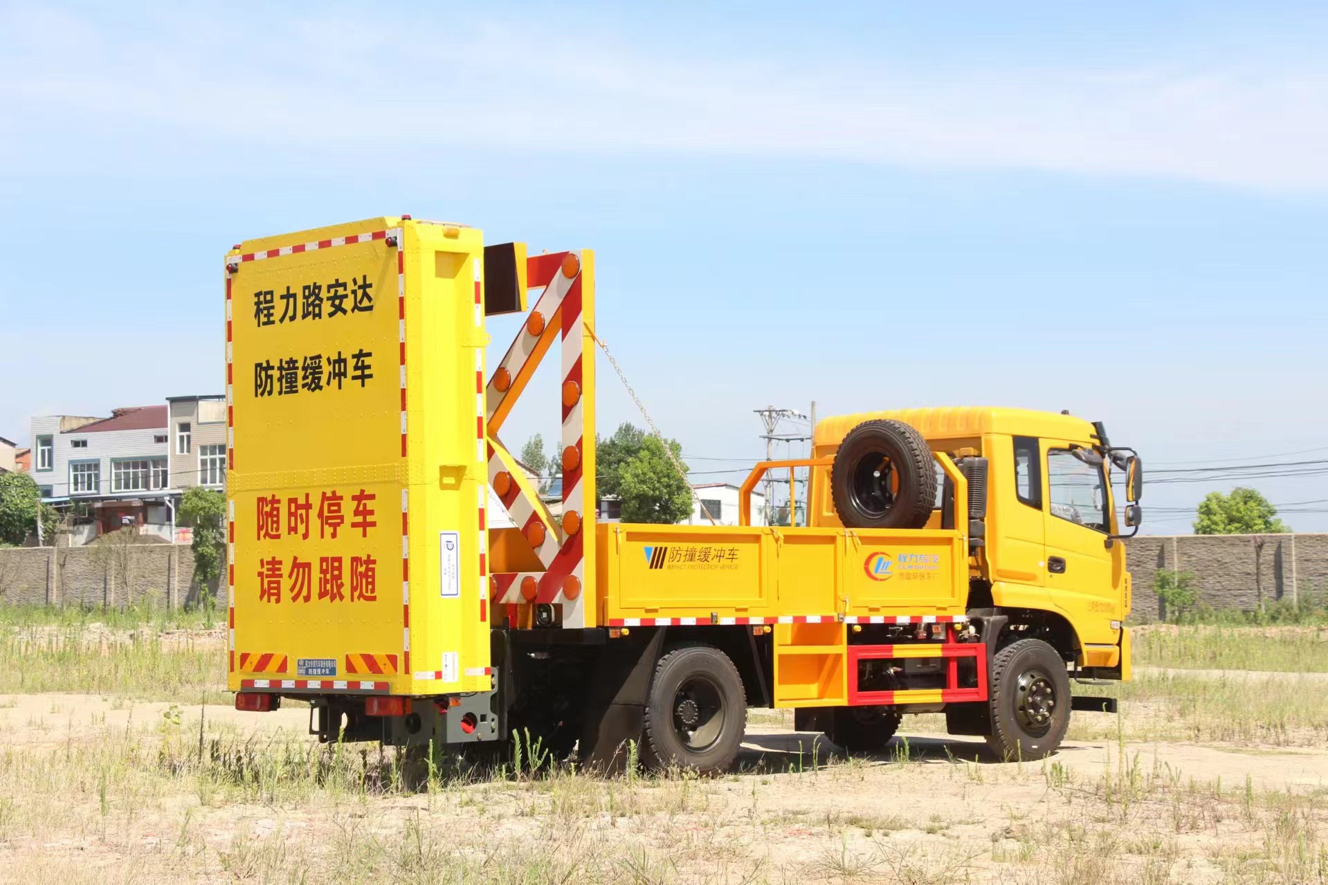 | 上装配置 | 采用Q235国标边3mm底板花纹板4mm厚,箱体后部防撞缓冲模块包采用国际知名技术产品100E防撞缓 冲模块,防撞缓冲吸能模块主要由车载防撞缓冲垫和导向标志架组成,充当施工作业车辆后方的缓冲卫士。 如若发生追尾事故,能够在肇事车辆和前方施工作业区域之间构建一个缓冲区域,通过机具结构变形吸收撞 击的能量,最大限度地降低被保护人员及设备遭到碰撞的几率。高性能液压系统,可实现快速举升和落下操 作,方便设备运输转场,一键启动功能,举升和落下防撞装置,当防撞装置未完全落下到工作位置或举升到 垂直运输位置时,会有自动警告音提示。 | ||