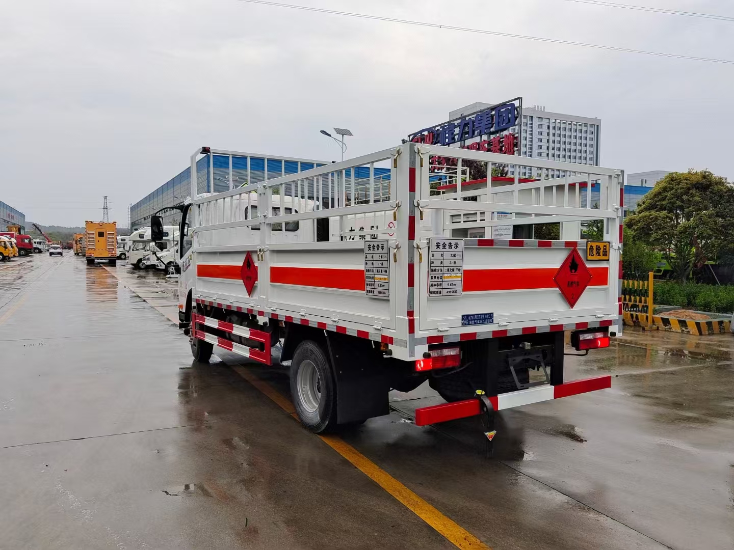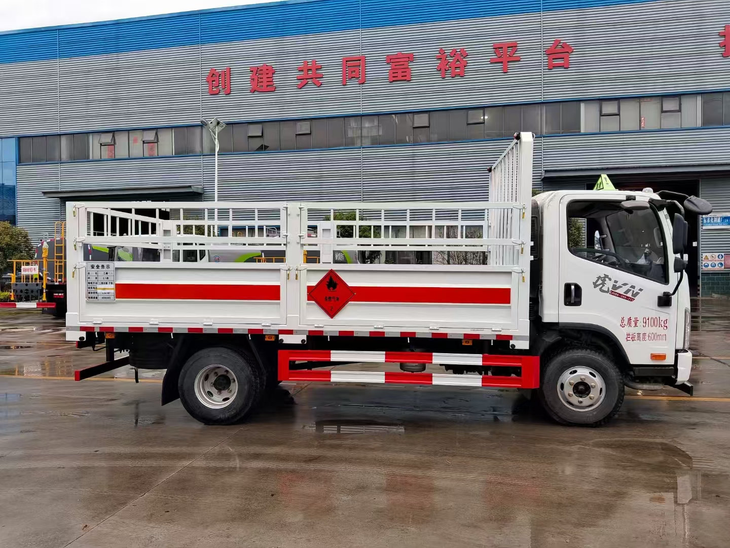 | 底盘配置 | 虎VN平顶单排驾驶室,锡柴CA4DB1A14E68,6GS42,270冲焊桥(速比4.875、轮距1640),速比4.875,7.50R1616层级真空胎,带国产ABS,前盘后楔制动器,空调+电动门窗+中控锁,气喇叭,高架箱,80L铝合金油箱,板簧3/7+3,前轮带爆胎应急装置,前碰撞预警+车道偏离辅助预警,前下防护,防飞溅挡泥板,排气火花熄灭器,限速79km/h,北斗+GPRS行车记录仪(带视频记录功能),带静电拖地带,NFH,危险品专用底盘 | ||