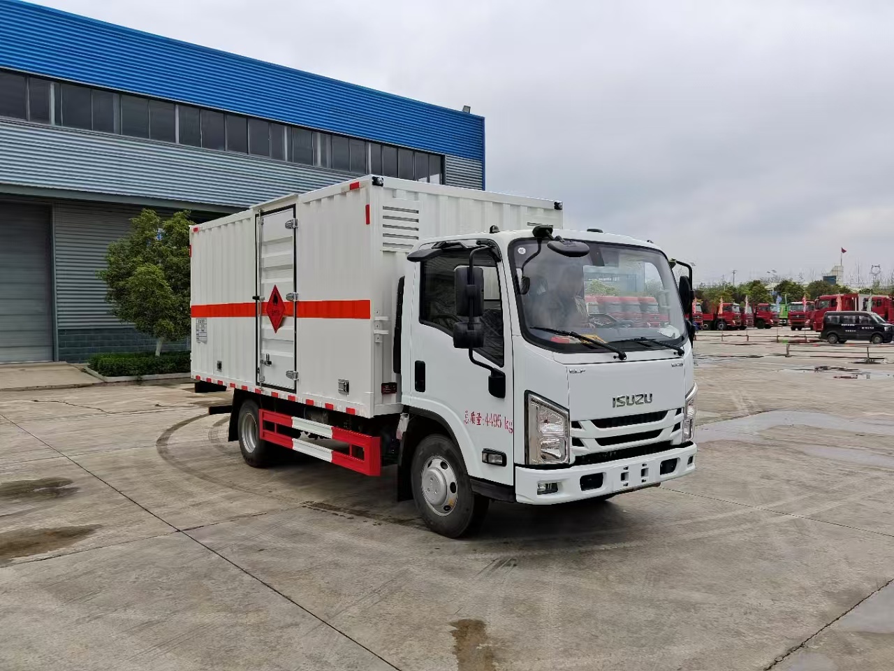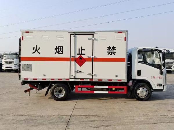 | 货箱配置 | 厢体为双层金属骨架结构,外板采用冷轧钢板,中间填充阻燃泡沫,内饰为铝板。底板为平板上铺防静电胶皮。厢内两侧加装固定货物卧环,门框带防盗报警器,顶部带烟雾报警器,厢体右侧选装侧门,随车配2个灭火器,危险标志牌,防火帽,危险品三角顶灯。(选装瓦楞板货箱) (尾部可选装液压升降尾板) | ||