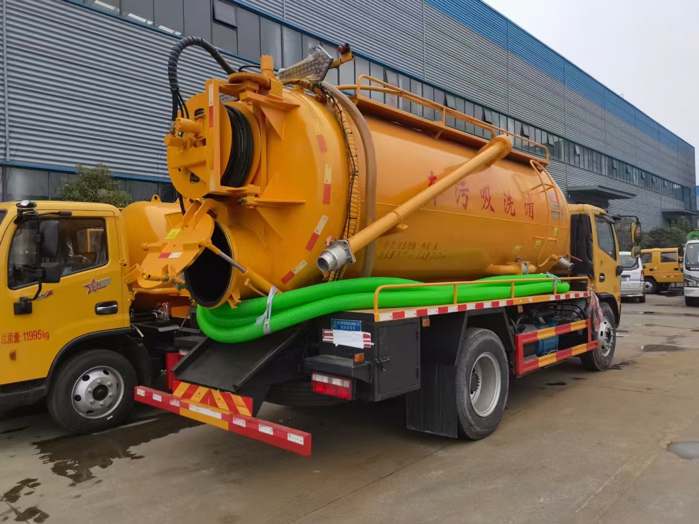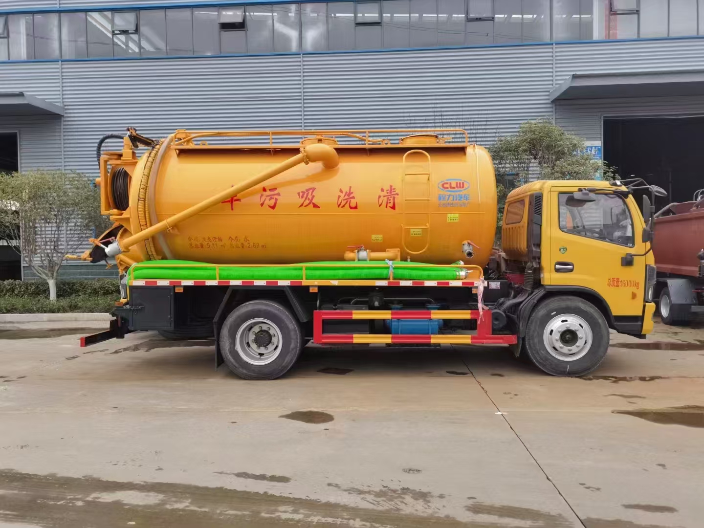 | 上装配置 | 吸污罐容积约9立方,清水箱约4立方,污水罐6mm制作,清水罐和污水罐安装互通。清水罐一个量水管,水箱最低点一个DN65球阀,带消防接头,品孚255流量高压泵,带60米19号高压管,卷盘液压旋转180度,液压收放管. 污水罐:SK-15水循环泵,水循环泵水箱为碳钢材质,顶部防溢阀位置尽量最低,后盖600液压打开,100球阀直通罐顶吸污尾部一个150的排污球阀,吸污压力表装在水箱附近,罐体尾部两侧工具箱,手动油门,1根8米吸污管带阴阳端接口,一个水雷枪头,其他厂内标配… | ||
