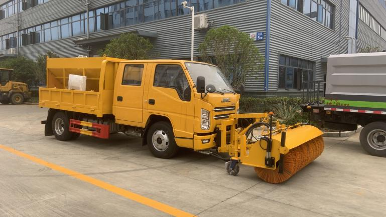 | 上装配置 | 箱体尺寸2600*2060*400mm,箱体内装 3立方融雪撒布机,撒布机采用 V 型料仓,结构简单可靠,使融雪剂自动落料,出料完全,无残留。驾驶室可加装2米除雪铲或者2米除雪滚。 | ||