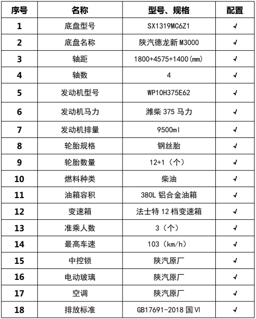 湖北程力汽车:程力CL5310TFC6BLS型陕汽德龙前四后八沥青碎石同步封层车产品型号及参数配置,程力CL5310TFC6BLS型陕汽德龙前四后八沥青碎石同步封层车高清图片,程力汽车系列程力CL5310TFC6BLS型陕汽德龙前四后八沥青碎石同步封层车最新报价请拨打客服热线。车辆主要配置 产品商标 程力牌 公告批次 382(扩展) 产品名称 同步碎石封层车 产品型号 CL5310TFC6BLS 总质量(Kg) 31000 罐体容积(m3) 额定载质量(Kg) 9590,9525 外形尺寸(mm) 11080,11280,11880 × 2550 × 385...
