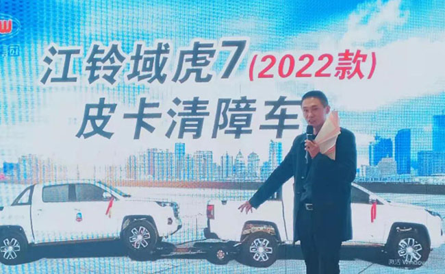 同期,程力商用车专业厂与江铃公司联合研发的皮卡清障车专用底盘御虎7产品推荐会和2021年度答谢会也在12月18日隆重举行。