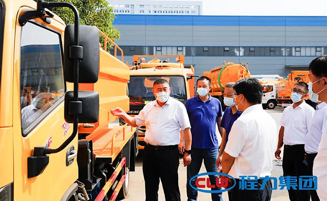 庚即,代表团一行饶有兴趣的参观了程力高端抑尘车专业厂的疫情消毒雾炮车,程国强书记与执行总经理朱武分别向代表团介绍了程力自己研发的无副发动机的智能化多功能消毒防疫车产品性能和市场销售情况。